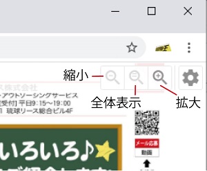 ![]() | 画面の右上にカーソルを移動すると「虫眼鏡ツール」が3つ出てきます。左から「縮小」「全体表示」「拡大」となります。 |