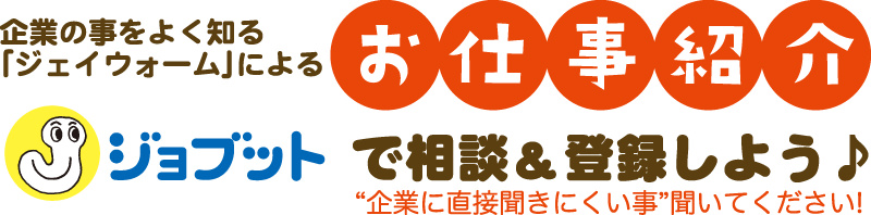 - ジェイウォームに求人情報を掲載しているので、気になる求人があればお気軽にご応募下さい!