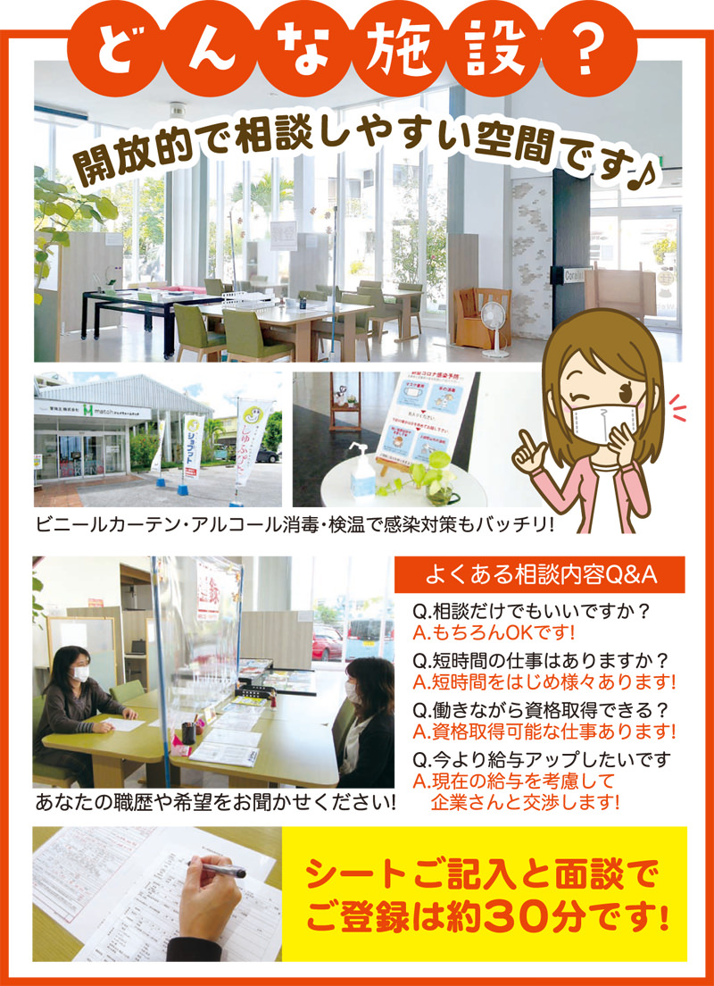 - 面談と登録(履歴書(写真付き)・身分証をご用意ください。希望のお仕事や職歴などを伺います)
