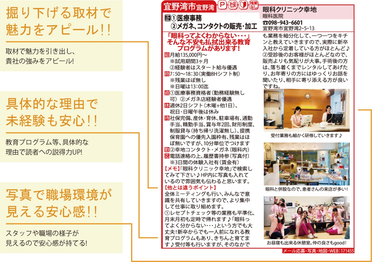 沖縄求人情報のジェイウォーム > 採用成功事例紹介 > CASE.3 眼科クリニック幸地