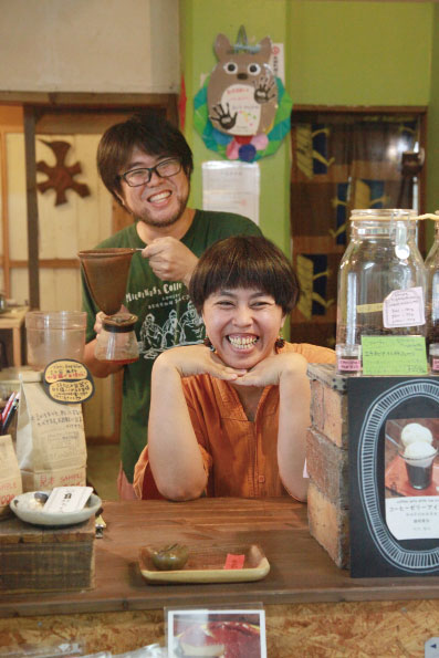 - 本部町の市場にあるカフェを経営している夫婦の写真です。