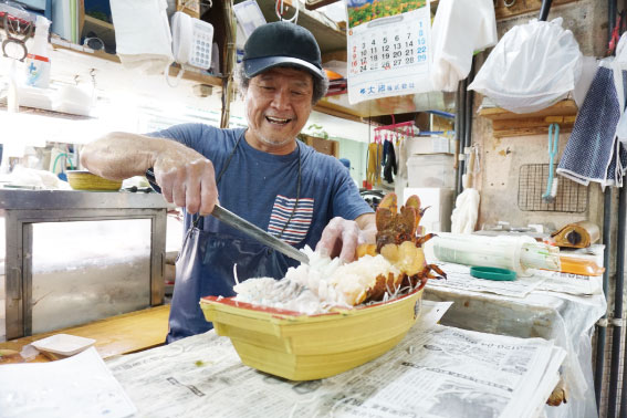 - 第一牧志公設市場が閉店する日に最後の船盛りを作っている所を撮りました。