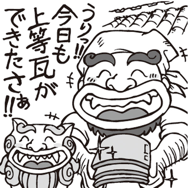 漆喰シーサーは、瓦職人が瓦を施工した後、瓦と漆喰で魔除けとして創ったのが始まりです。シーサーは観光立県沖縄のシンボルとして、ガイドブックには赤瓦に鎮座した姿が紹介され、土産としても人気の商品です。
