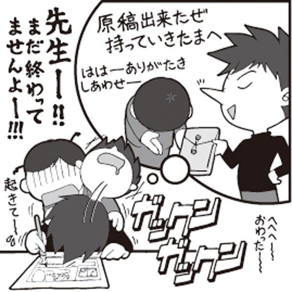 雑誌の連載が続く限り、決まった休日はなく、締切前は徹夜も多くなります。スケジュール調整など、自己管理能力が問われます。
