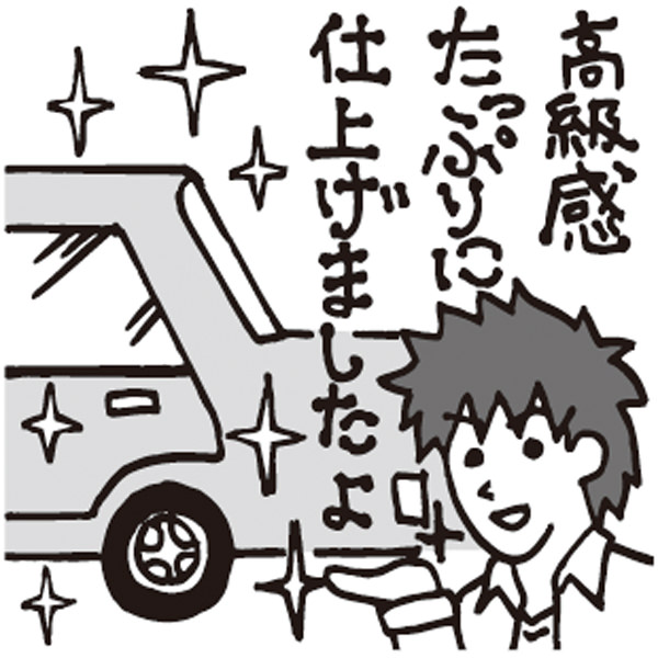 次に計量調色で色を作り、微調整しながら色を合わせていきます。乾燥後は磨いて整えます。最後は、さび止めをして外したパーツを取り付け、洗車・最終確認を行います。鈑金・塗装は時間のかかる作業ですが、分担によって効率や技能を向上させることができます。