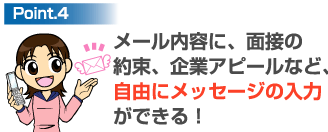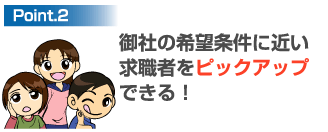 | スカウトメール | 弊社独自の人材データベースに登録された求職者へ、貴社自ら面接アプローチのメールが送信できます。 |