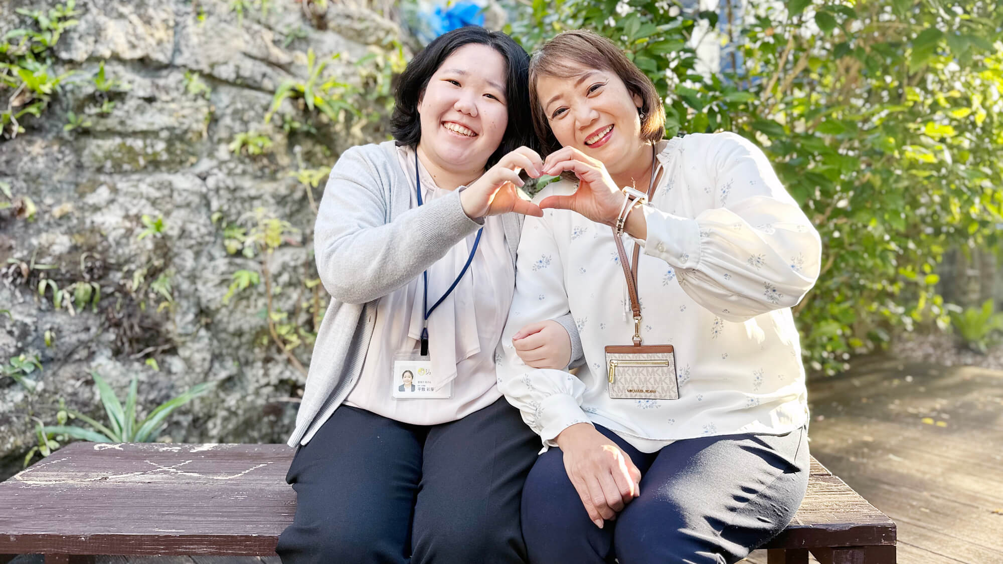 | 中途入社の内勤営業 下地さん 新卒入社の制作企画課 平敷さん |
